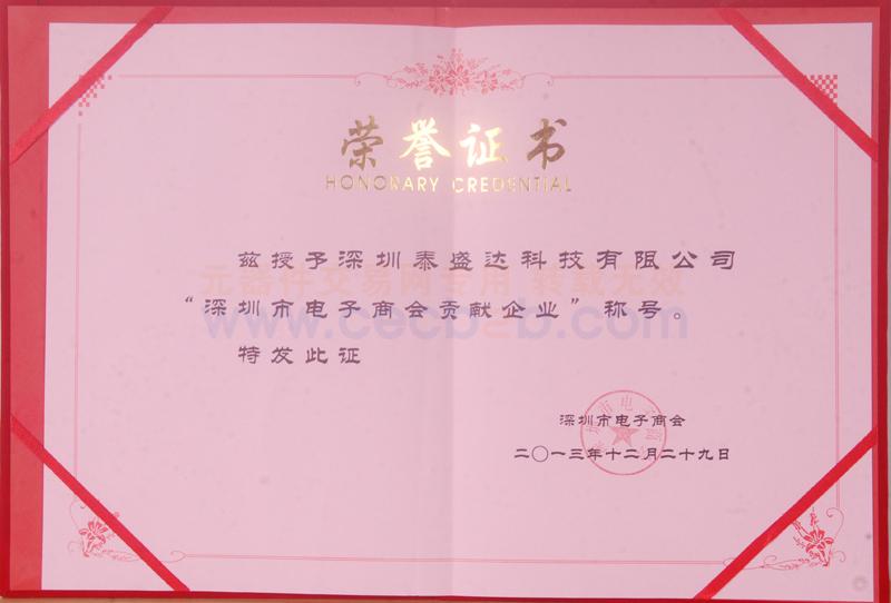 其他获奖证书: 深圳方市电子商会贡献企业称号