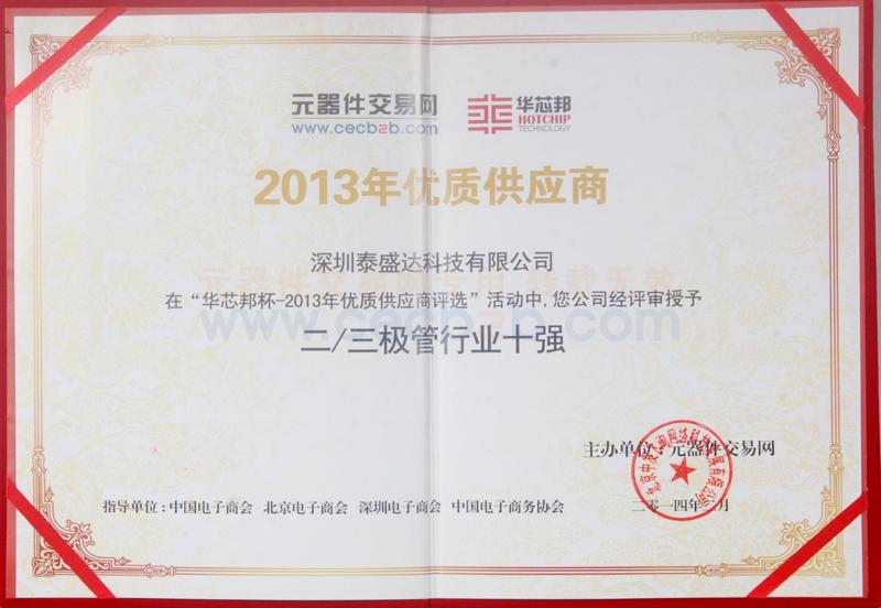 其他获奖证书: 二三极管行业十强奖